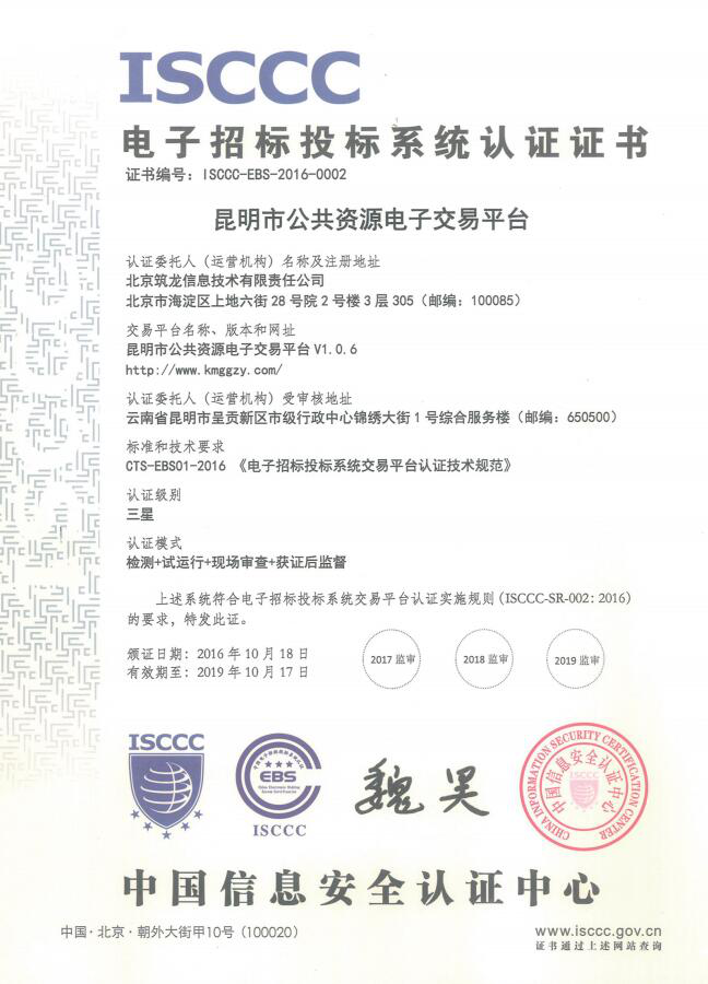 2012年,經昆明市政府批準、市監管辦牽頭,按照《電子招標投標辦法》及技術規范要求,采用領先的“合作共建”模式,由筑龍承建覆蓋全市所有公共資源交易項目的電子化交易平臺。